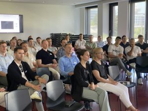 Nach der Begrüßung hat Professor Jan Nagler, Direktor des Centre for Human and Machine Intelligence der FS, einen beeindruckenden Impulsvortrag zum Thema „Künstliche Intelligenz – was nun?“ gehalten, der eine anregende Diskussion nach sich zog.